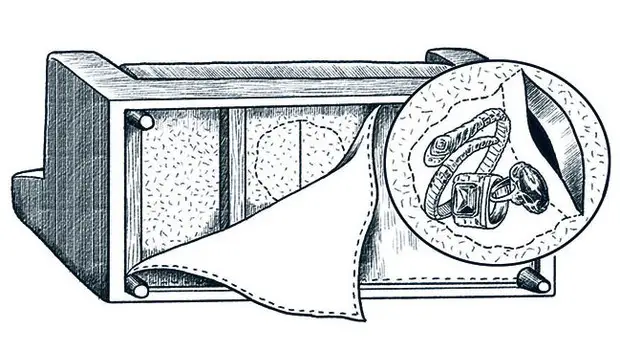 - Двойное дно в выдвижных ящиках или двойной верх в шкафах. Довольно простой вариант, спрятать документы или деньги.
